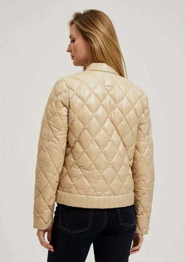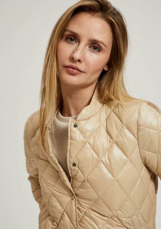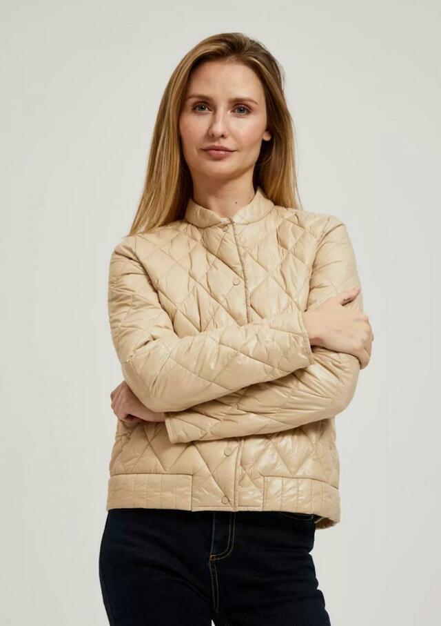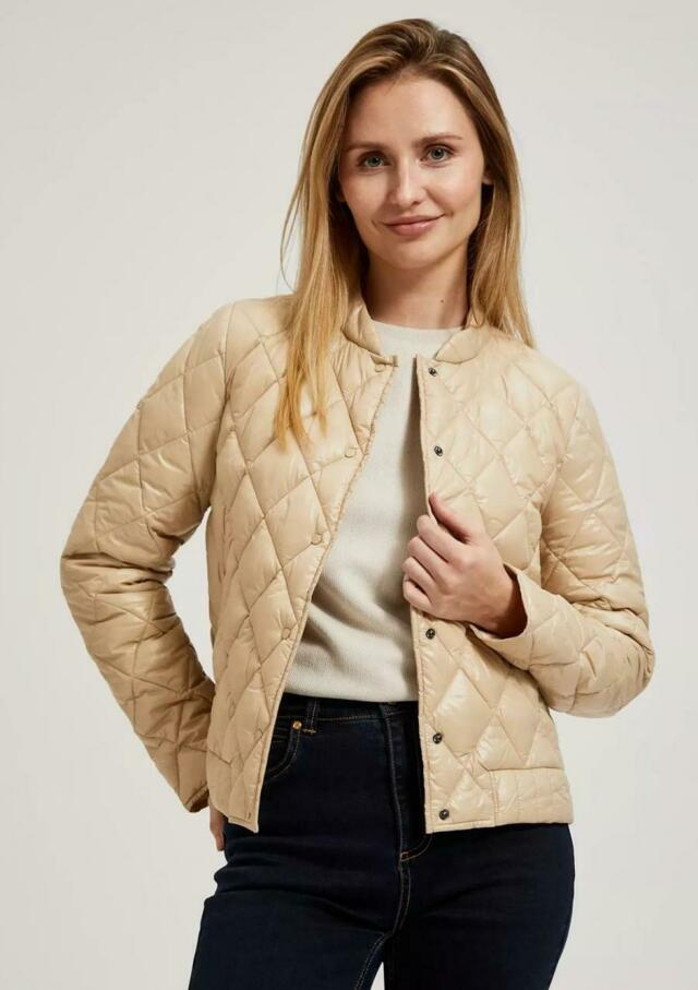KRÁTKÁ BÉŽOVÁ PROŠÍVANÁ BUNDA SE ZAPÍNÁNÍM NA DRUKY
