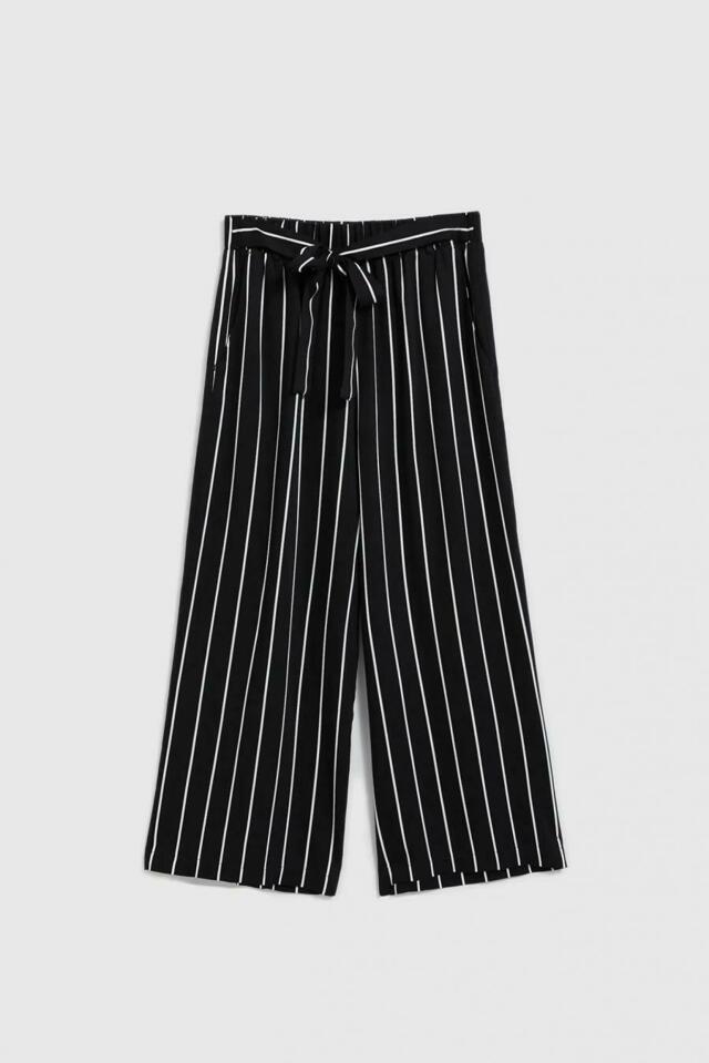 100% VISKÓZA Černé pruhované culottes jsou návrhem, který vyniká módním Zobrazit více