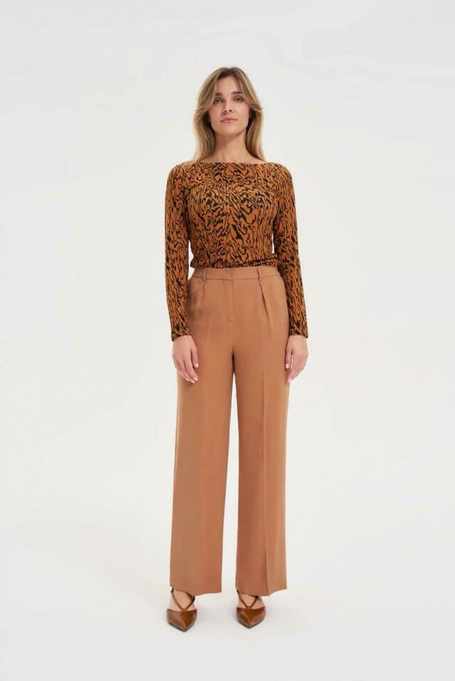 Hnědé viskózové kalhoty
