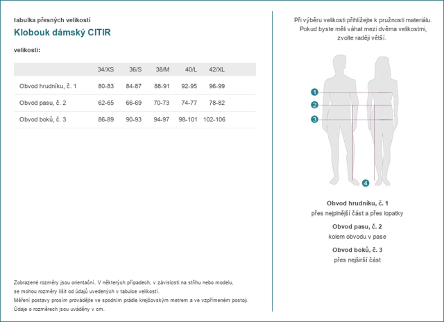 Tabulka velikostí značky Moodo