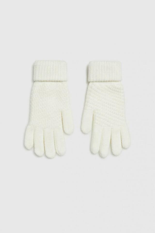 Krémové pletené rukavice