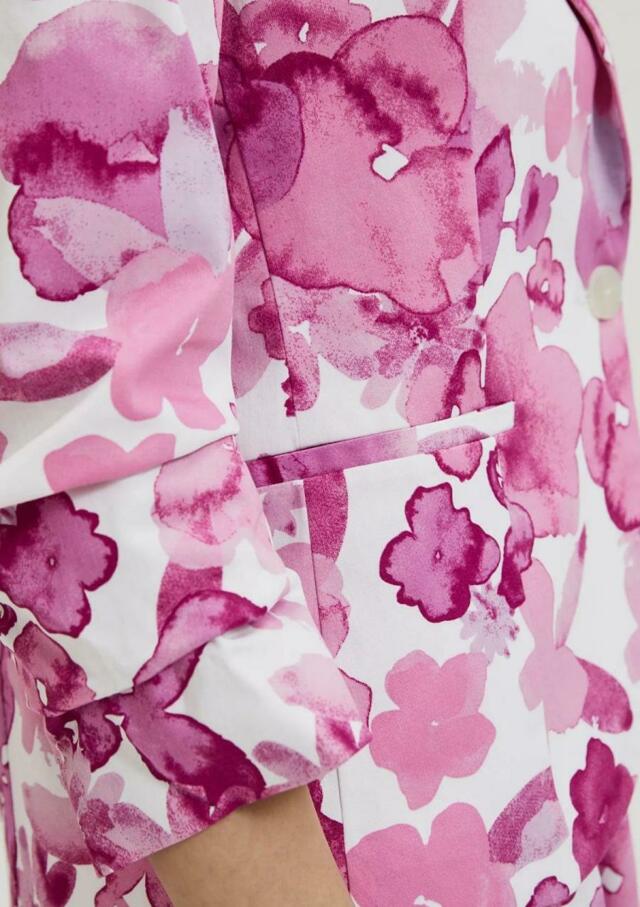 RŮŽOVÁ BUNDA S VOLÁNOVÝMI RUKÁVY A KVĚTINAMI