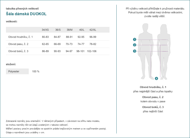 Tabulka velikostí značky Moodo