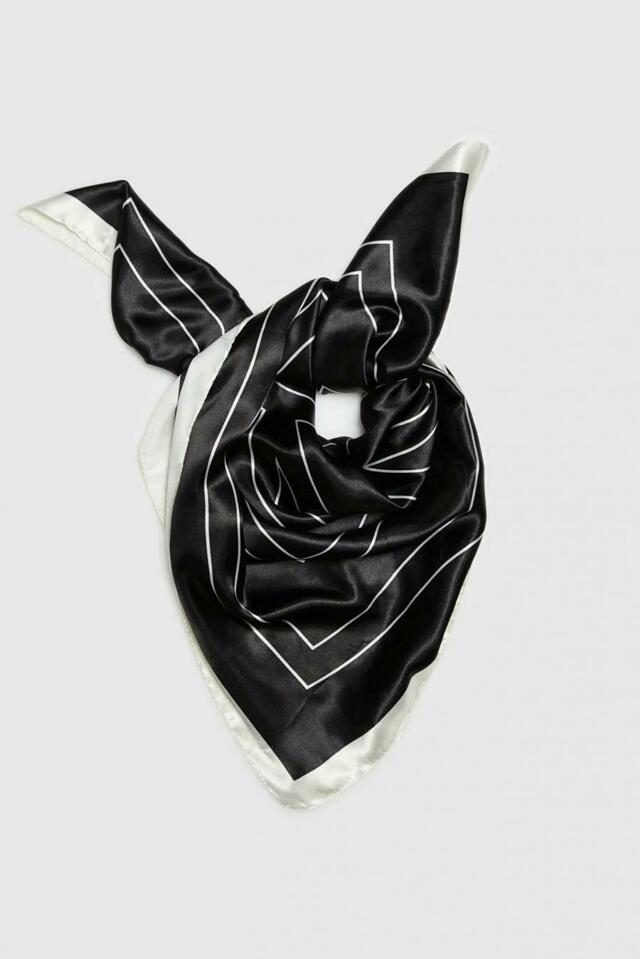 100% POLYESTER Dámský šátek v černé barvě s geometrickým vzorem Zobrazit více