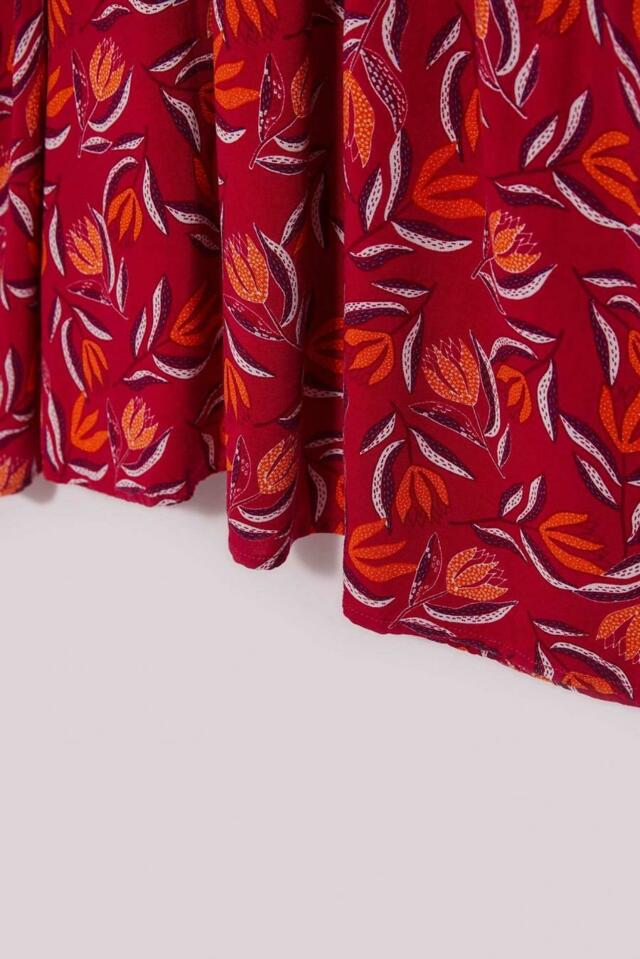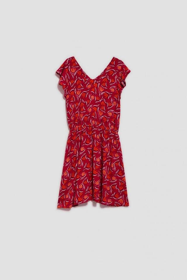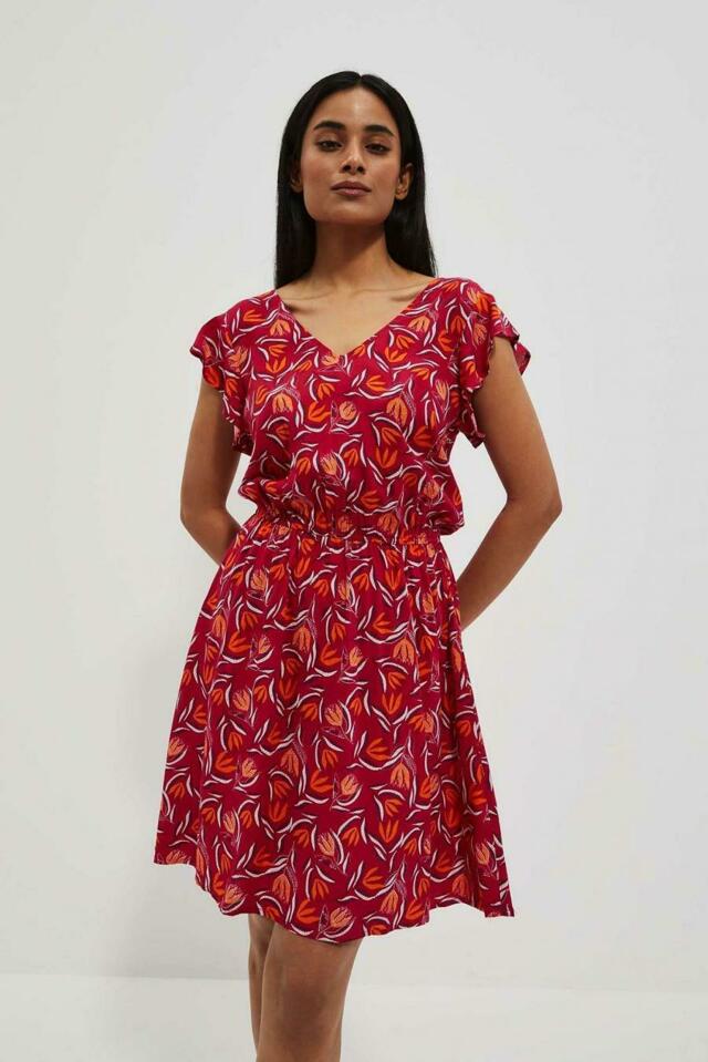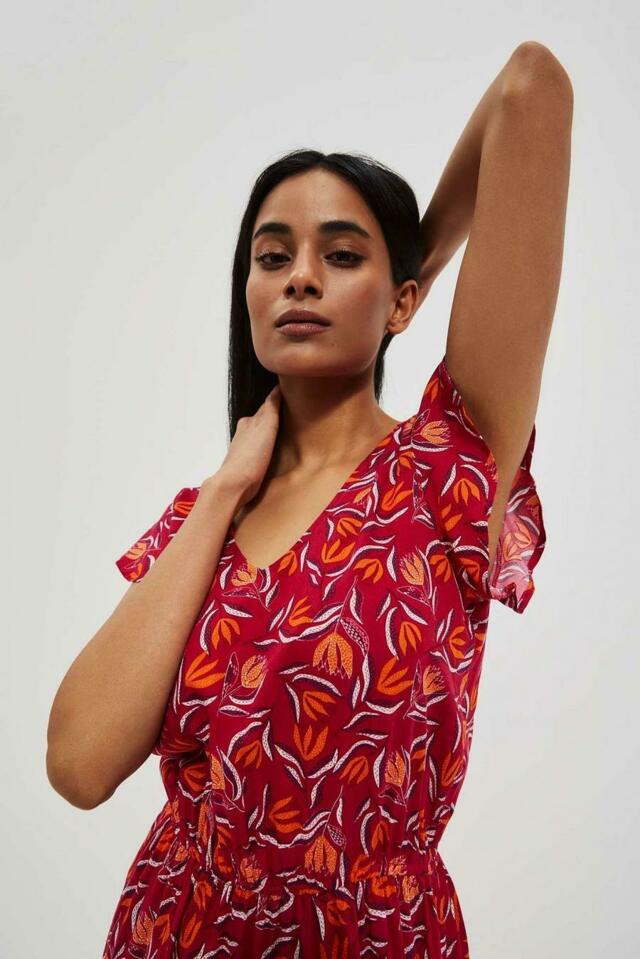 Šaty v růžové barvě se vzorem oranžových květů po celé ploše. Drzý výstřih Zobrazit více