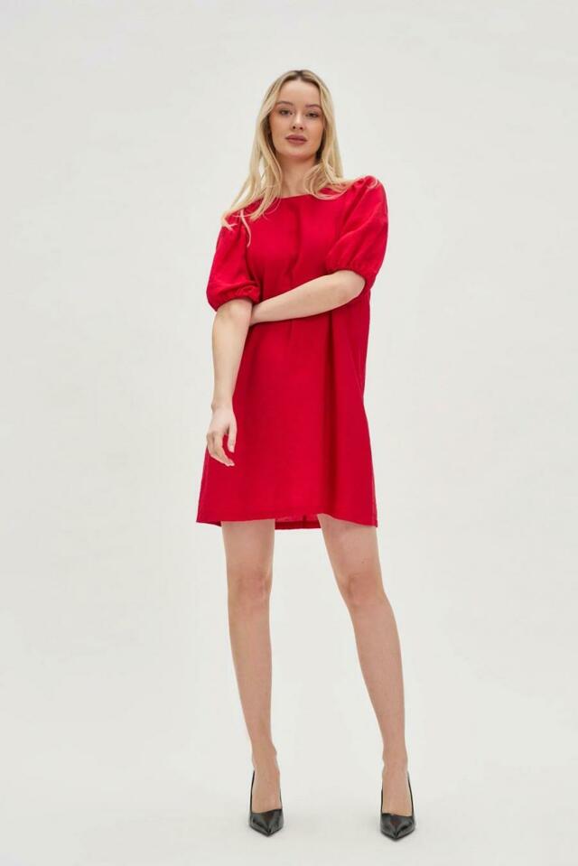 Viskózové šaty s nabíranými rukávy, červené