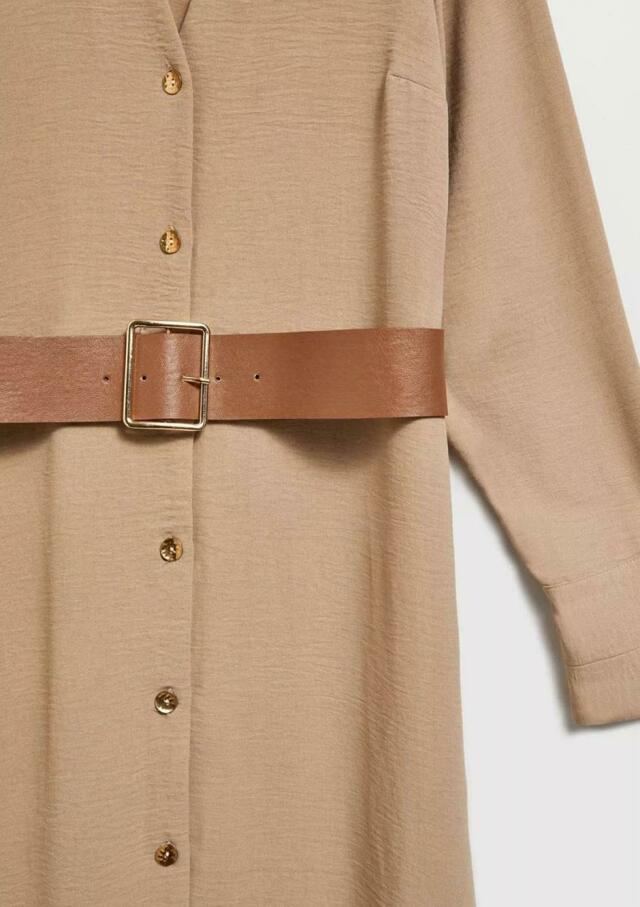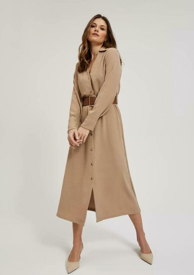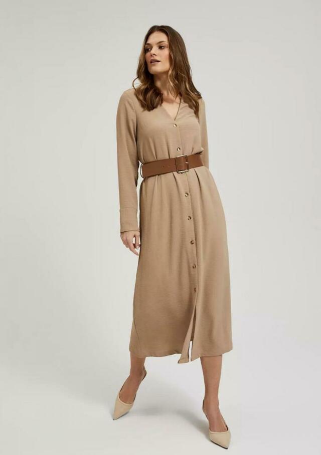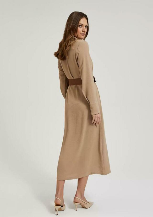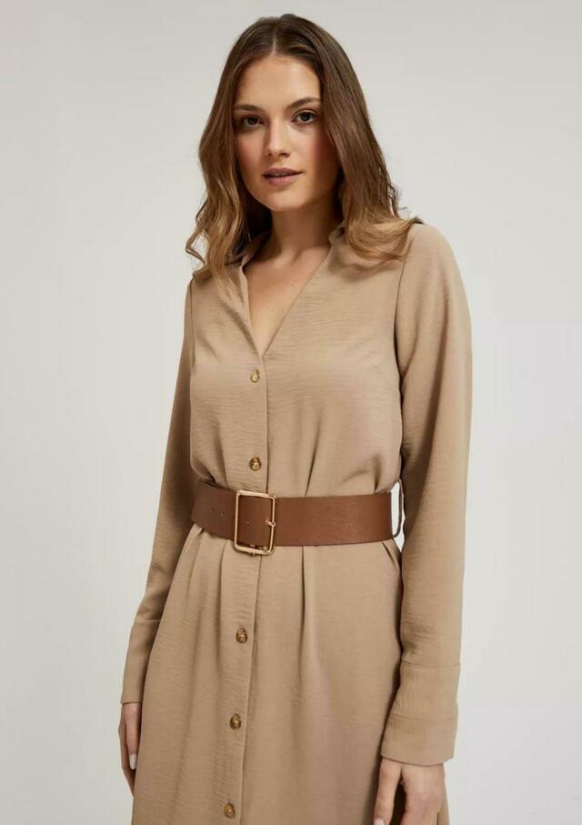 MIDI ŠATY S ŠIROKÝM BÉŽOVÝM PÁSKEM