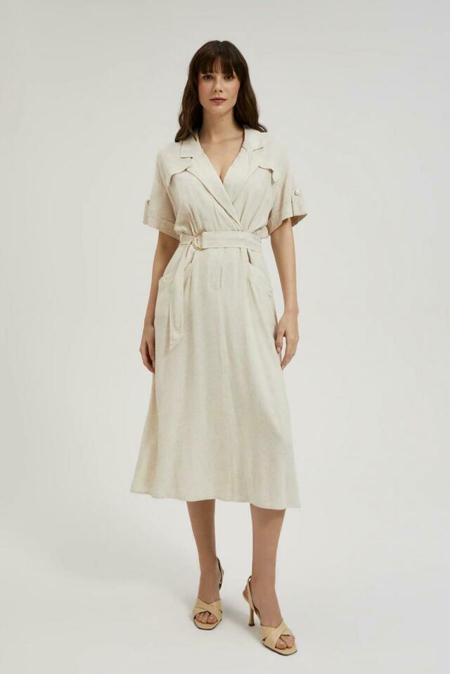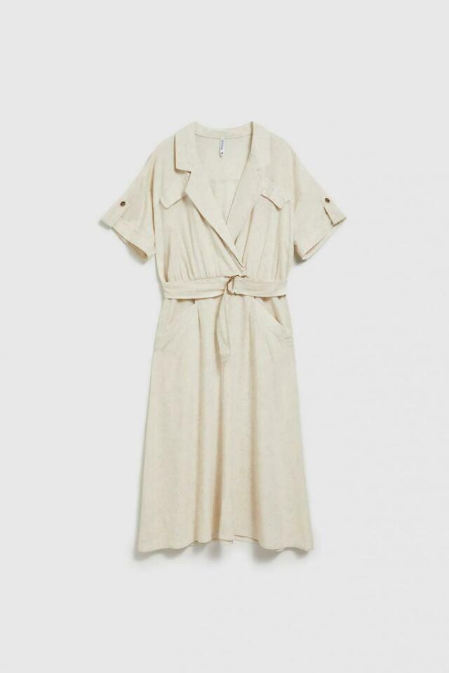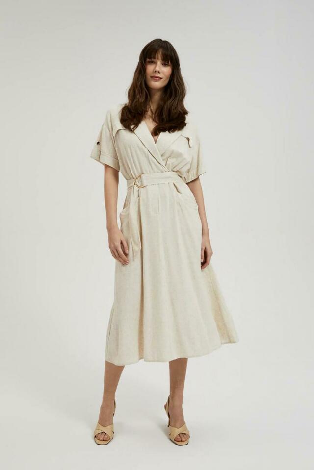 80% VISKÓZA, 20% LEN Elegantní dámské šaty v béžové barvě Zobrazit více