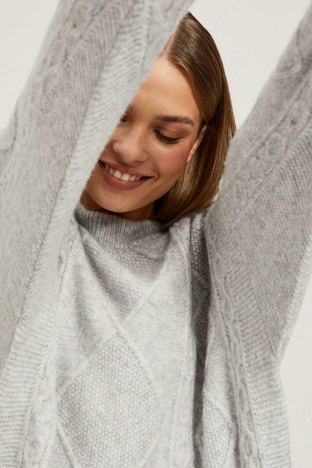 62,7 % AKRYL, 32,1 % POLYESTER, 5,2 % VLNA Šedý svetr je absolutní Zobrazit více