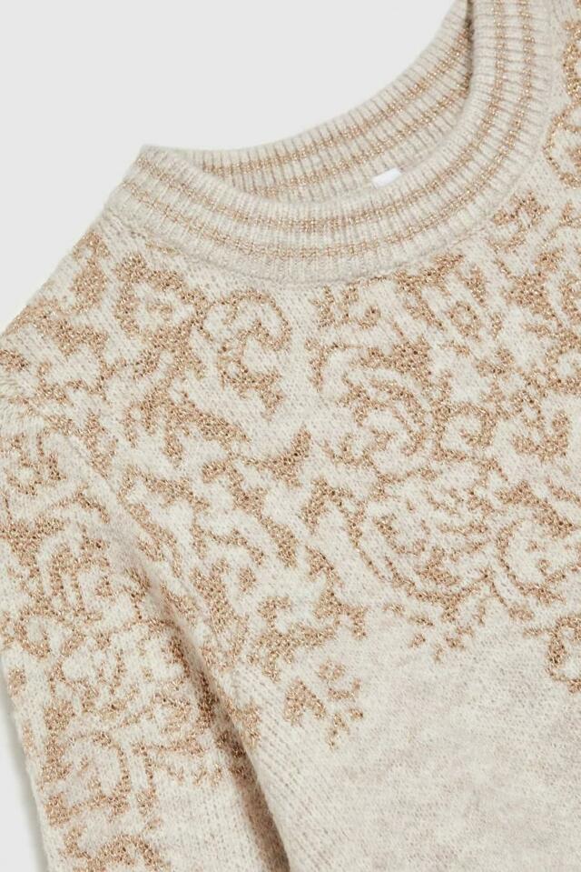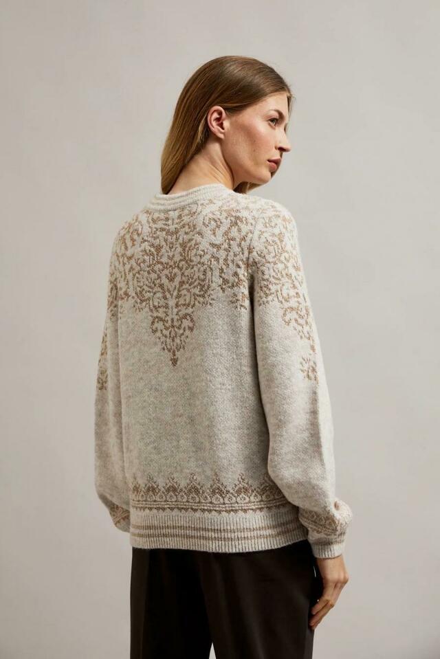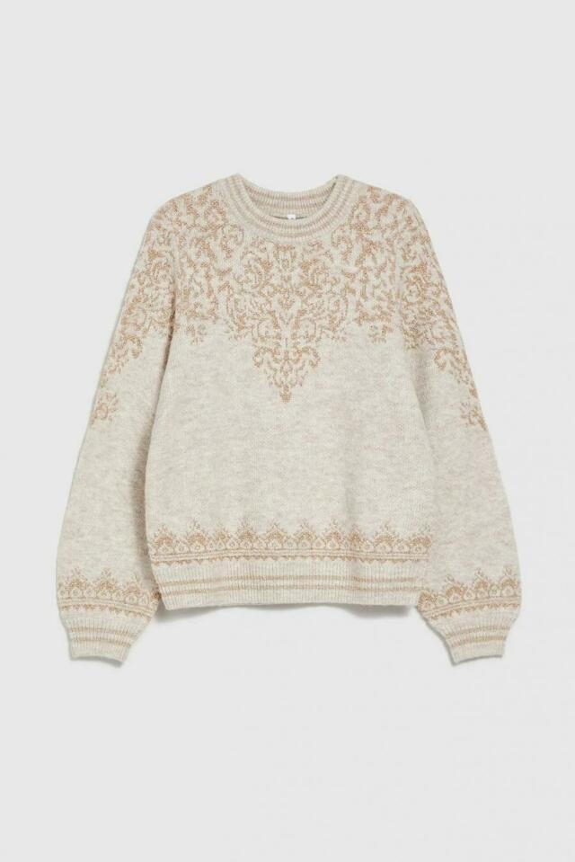 Béžový svetr zdobený jemným ornamentem je mimořádně elegantním a stylovým doplňkem vašeho šatníku. Zobrazit více