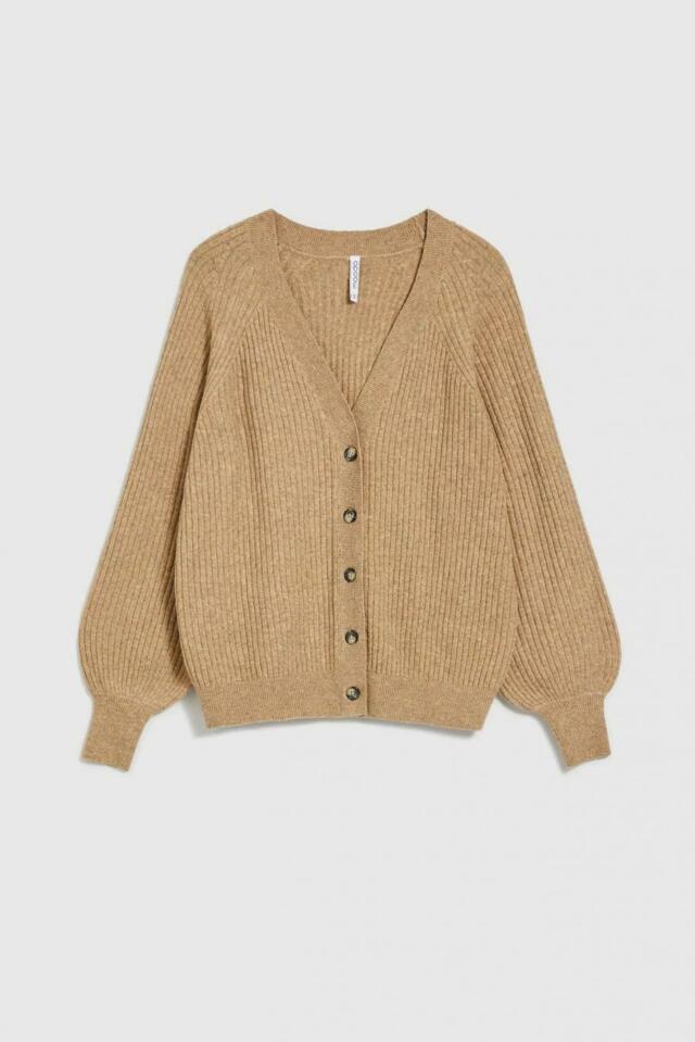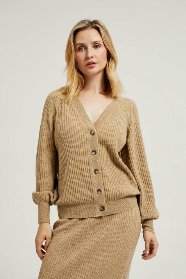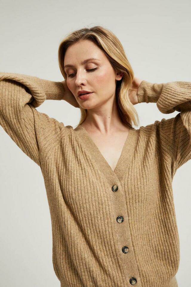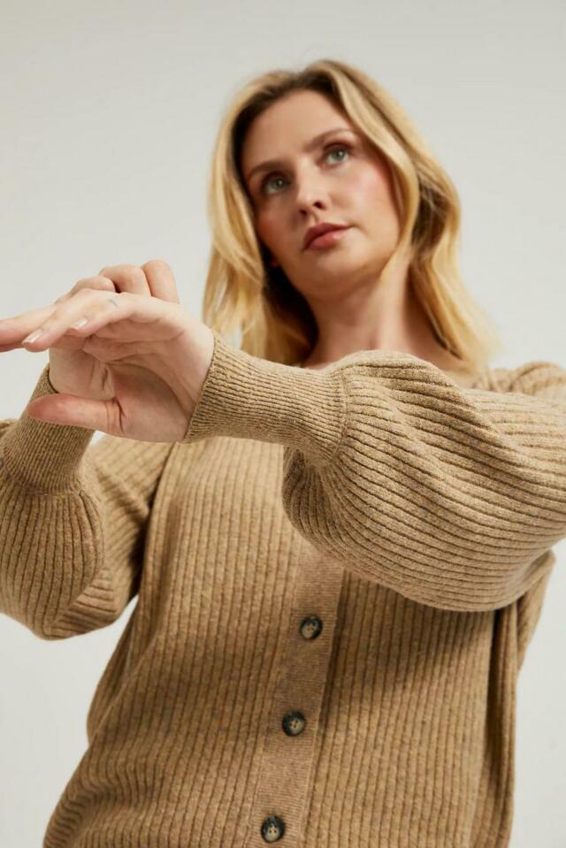 Béžový dámský svetr je perfektní volbou pro chladnější dny. Kardigan s dlouhými rukávy a výstřihem Zobrazit více