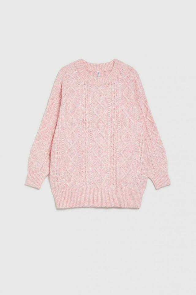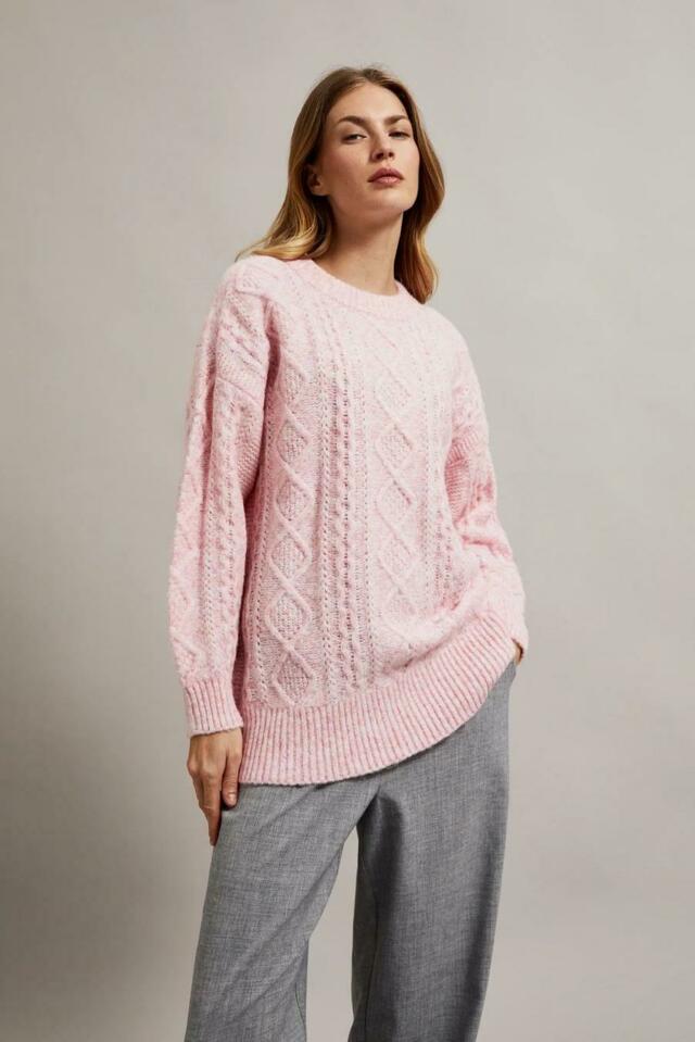 63 % AKRYL, 31 % POLYESTER, 6 % VLNA Růžový svetr s poutavou kabelovou Zobrazit více
