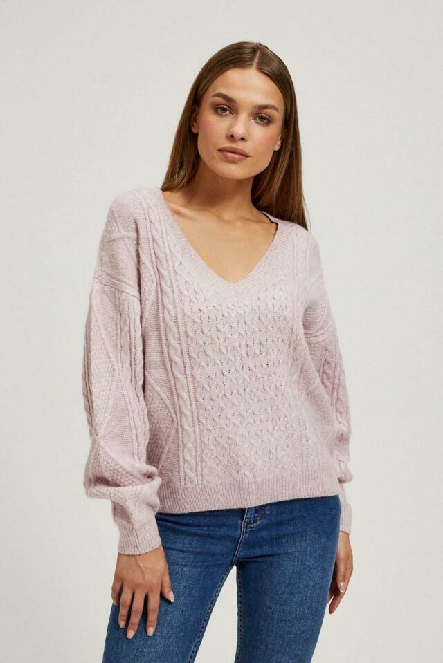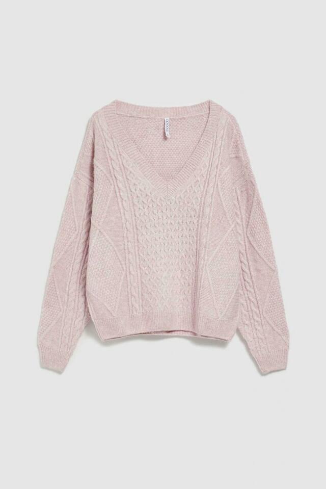 RŮŽOVÝ SVETR S VÝSTŘIHEM DO V