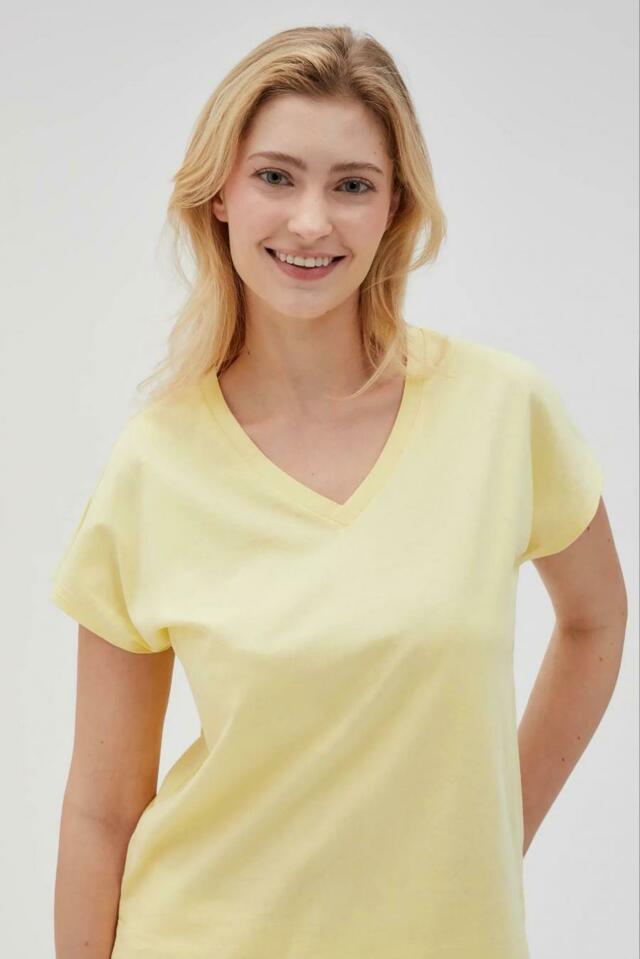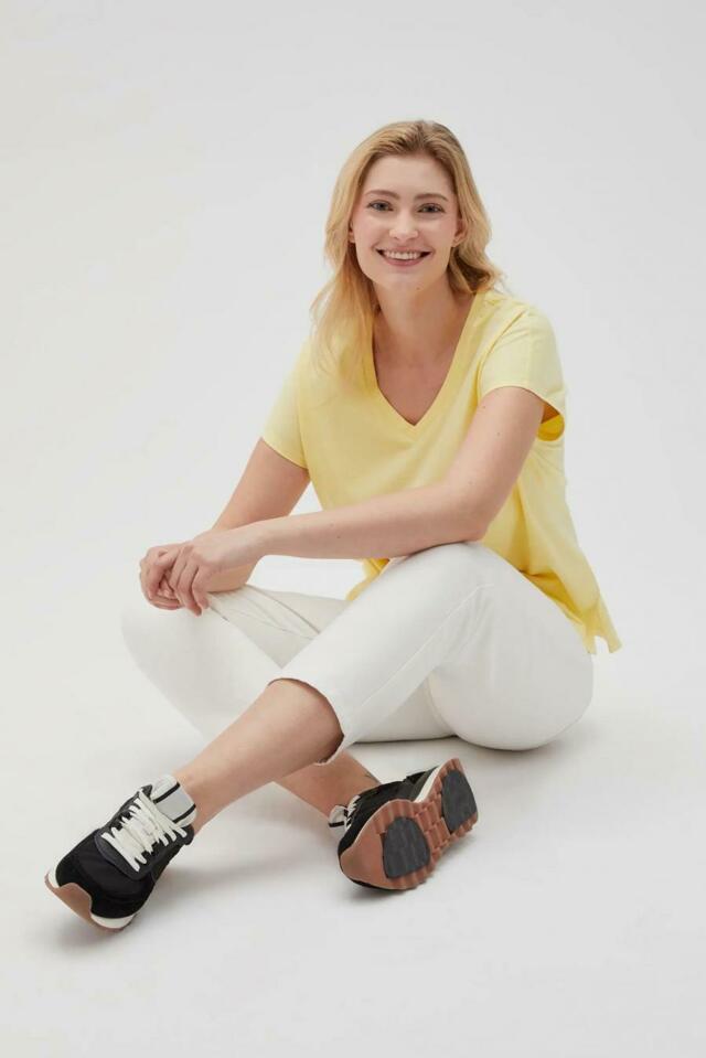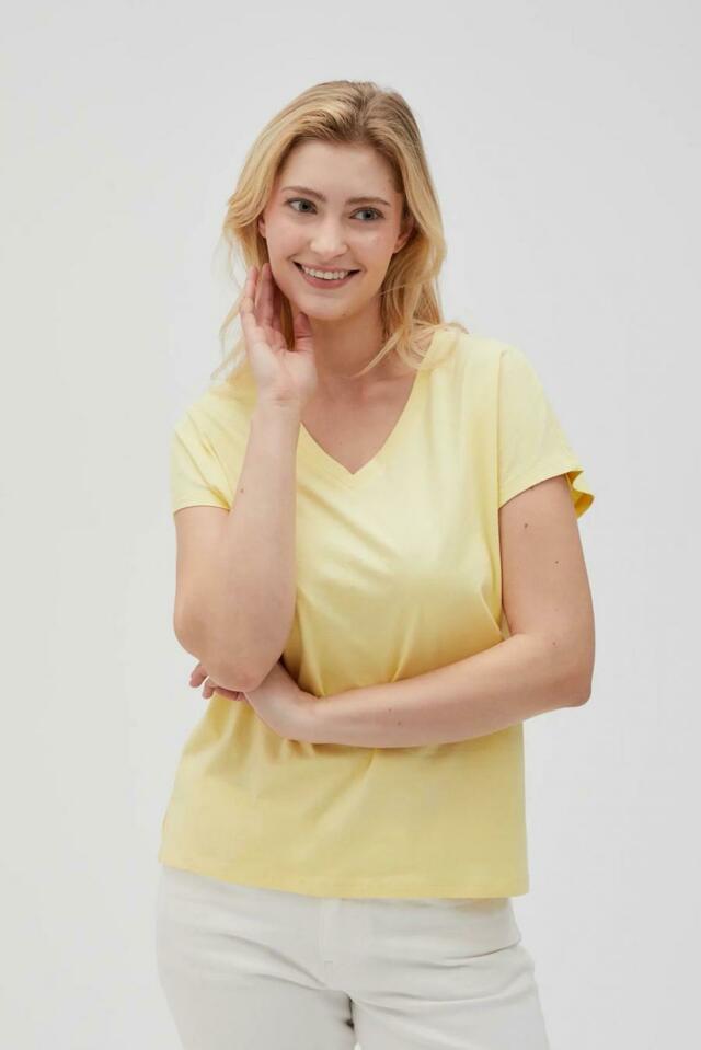 100% BAVLNA Žlutá halenka, bez vzoru, z hladké bavlny. Zobrazit více