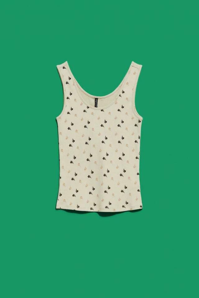 95% BAVLNA 5% ELASTAN Béžový top, celoplošný potisk malých květin. Kulatý Zobrazit více