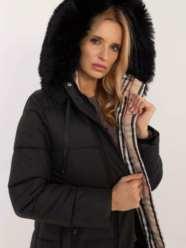 Dlouhá zimní bunda s kostkovanou podšívkou