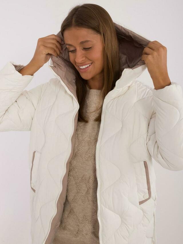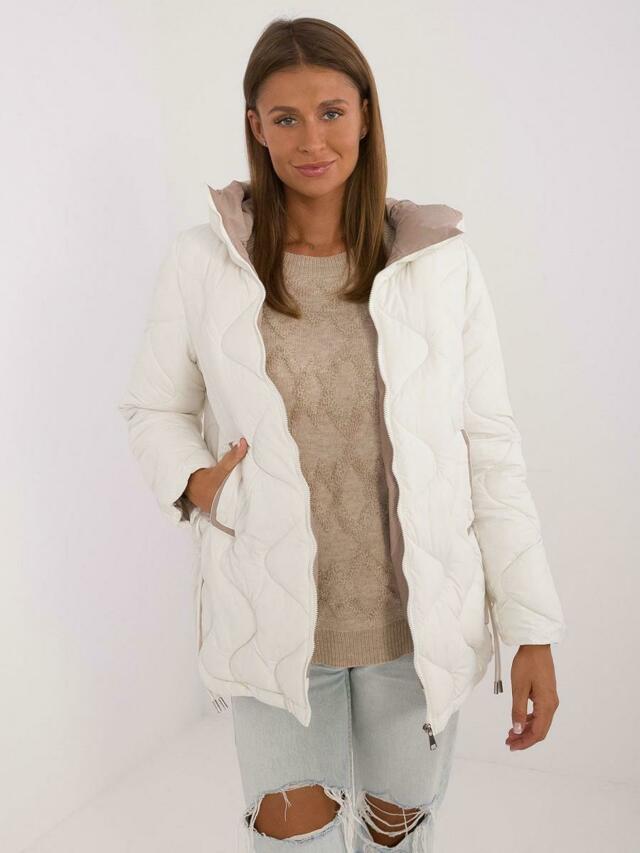 Prošívaná přechodná bunda v ecru barvě s kapsami