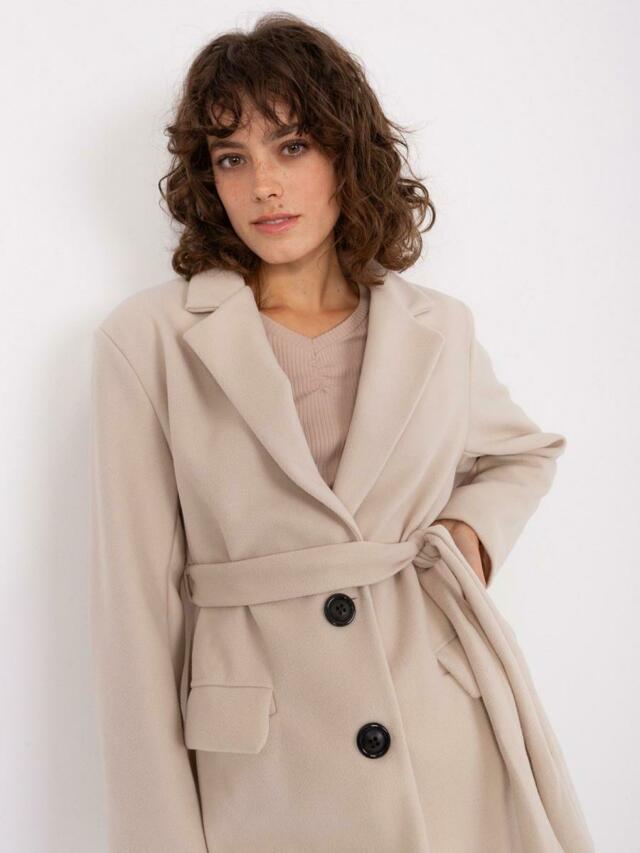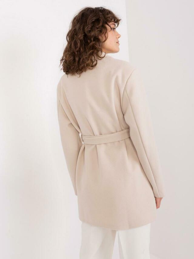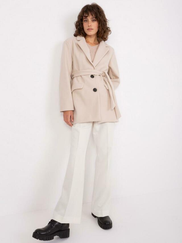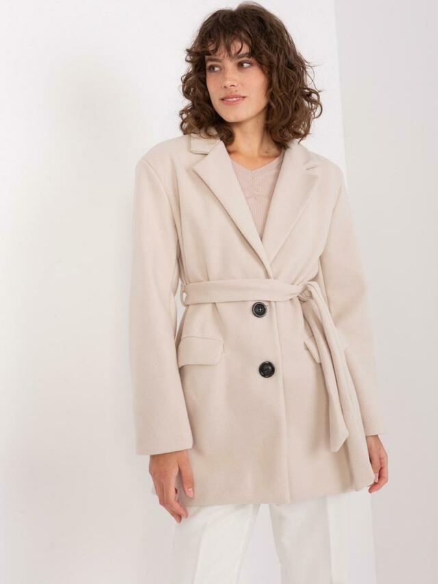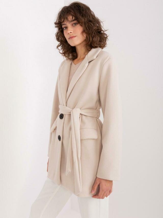 Světle béžový přechodný krátký kabát s páskem a s podšívkou