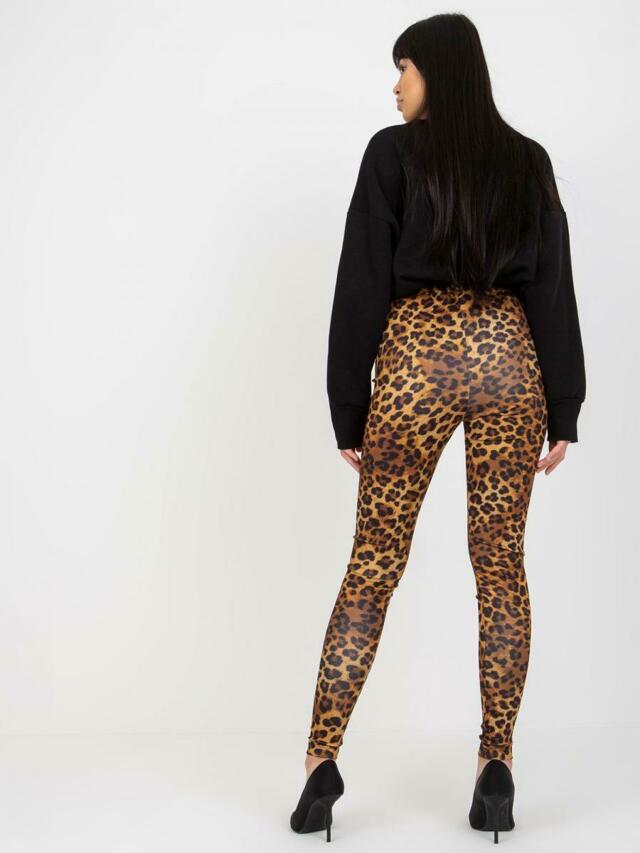 Tmavě béžové a černé ležérní legíny s leopardím vzorem.