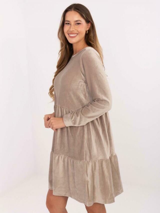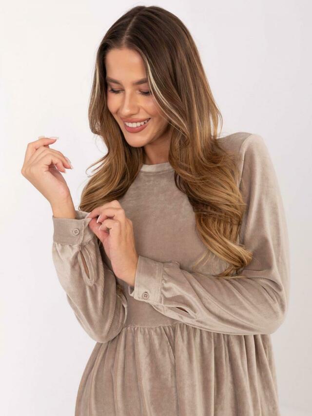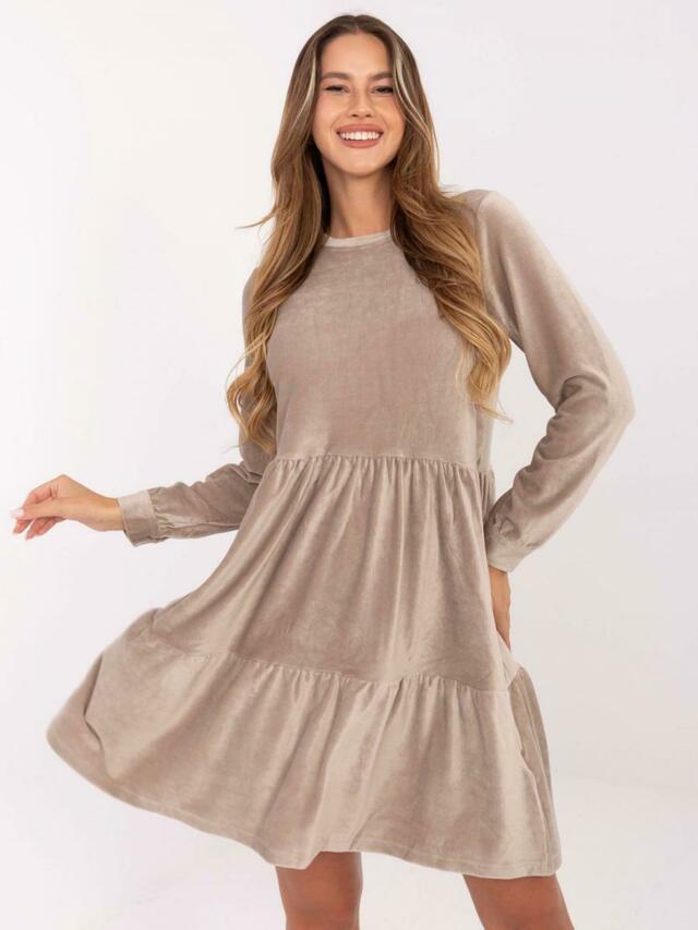 Tmavě béžové rozšířené sametové šaty