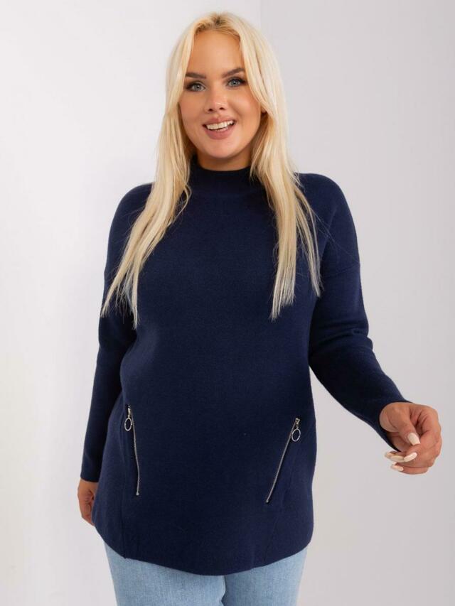 Dámský svetr pro plnoštíhlé ženy se zipy a nízkým rolákem